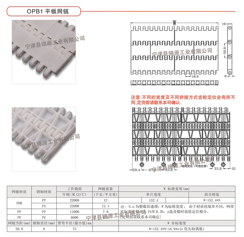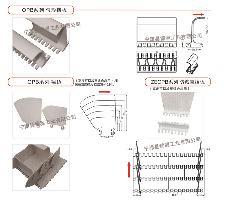 節(jié)距50.8mm   材質(zhì)POM、PP、PP加纖    平板型、平格型、圓孔型、可增設(shè)側(cè)板、擋板
